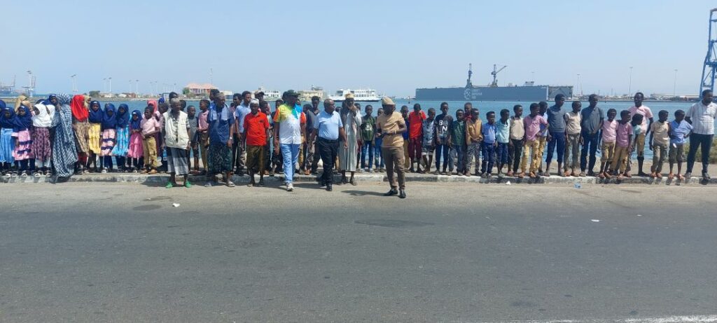 L’origine de cette invitation remonte à avril dernier. Lors de sa tournée dans les écoles reculées du nord, le Ministre de l’Éducation, ayant constaté que les enfants de ces trois écoles portaient des habits désuets, avait pris l’engagement auprès de leurs parents de leur offrir des habits neufs. C’est dans le but de concrétiser cette promesse que l’invitation a été lancée. L’objectif était double : offrir aux enfants des vêtements neufs et leur permettre de découvrir la capitale tout en participant aux festivités du 48e anniversaire de l’indépendance nationale. Un pari pleinement réussi puisque chaque enfant et accompagnateur, venus des localités les plus reculées du pays, a pu recevoir plusieurs tenues vestimentaires, des chaussures et des ballons de football offerts par le ministre de l’Éducation nationale, mais ils ont également pu vivre, durant quatre jours, le quotidien de la capitale, effectuer une excursion dans la vie de la capitale, en participant à diverses activités éducatives, culturelles et citoyennes et en visitant les lieux emblématiques de la capitale. Le voyage des jeunes écoliers a débuté le lundi 23 juin depuis leurs localités respectives pour arriver le lendemain à Djibouti par le ferry, à partir de Tadjourah. Le déplacement et l’encadrement ont été coordonnés par les inspecteurs des régions d’Obock et de Tadjourah, respectivement Hamadou Ali et Ahmed Hamadou. Une première aventure maritime pour tous. À leur débarquement, à l’escale, ils ont été chaleureusement accueillis par les plus hauts responsables du ministère de l’Education, conduits par le Secrétaire Général du MENFOP M. Mohamed Abdallah Mahyoub, avant d’être conduits à l’école de la ZPS, transformée pour l’occasion en un centre d’accueil confortable. Les jeunes invités ont ainsi bénéficié de conditions agréables tout au long de leur séjour à Djibouti, logés dans des salles climatisées équipées de matelas et de couvertures, et se sont vus servir trois repas quotidiens accompagnés de collations.