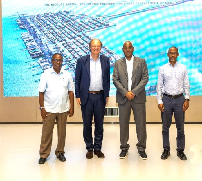 Le Président de l’Autorité des Ports et Zones Franches, Aboubaker Omar Hadi, a reçu aujourd’hui M. Nicolas Sartini, Vice-président senior chargé du développement commercial de la Mediterranean Shipping Company (MSC), au Centre international d’expositions de Djibouti, également connu sous le nom de Red Sea World. Cette rencontre s’inscrivait dans le cadre des préparatifs de la prochaine réunion entre Aboubaker Omar Hadi et Diego Aponte, Président de MSC, prévue le 25 mars au siège du groupe à Genève.