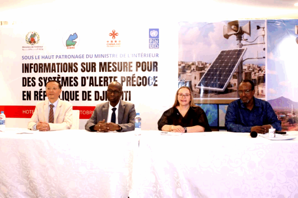 La cérémonie a réuni de nombreuses personnalités, dont Son Excellence Monsieur Hu Bin, Ambassadeur de la République populaire de Chine à Djibouti, Madame Alessandra Roccasalvo, représentante résidente du PNUD, Monsieur Ahmed Mohamed Madar, secrétaire exécutif de la Gestion des risques et des catastrophes, ainsi que les directeurs de la Protection civile, de l’ONEAD et de l’Agence nationale de la météorologie. Plusieurs représentants d’organisations internationales et d’institutions nationales ont également pris part à l’événement. Doté d’un financement de deux millions de dollars, ce projet constitue un exemple concret de coopération Sud-Sud, associant Djibouti, la Chine et le PNUD dans le renforcement de la résilience nationale face aux catastrophes naturelles de plus en plus fréquentes dans la région. L’initiative permettra de moderniser les systèmes d’alerte précoce et de renforcer les capacités opérationnelles du Secrétariat exécutif de la Gestion des risques et des catastrophes, ainsi que celles des institutions nationales concernées.