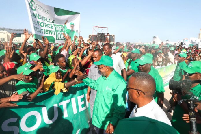 Le candidat de l’UMP, Ismail Omar Guelleh, a tenu hier son troisième meeting depuis le début de la campagne présidentielle au terrain Sans-fil de la commune de Ras Dika. Devant une foule nombreuse et acquise à sa cause, il a présenté les grandes lignes de son programme pour le scrutin du 10 avril 2026. Il a mis en avant son bilan et sa volonté de poursuivre les réformes engagées. Le candidat a également insisté sur la nécessité de préserver la stabilité du pays face aux défis régionaux et internationaux. Dans une ambiance festive et mobilisatrice, marquée par des chants et des slogans, il a appelé les citoyens à accomplir leur devoir civique. Soulignant l’importance de l’unité nationale, il s’est présenté comme le garant de la cohésion et du développement du pays. Ce meeting confirme la dynamique de terrain engagée par le candidat à travers le pays. Nous reviendrons en détail sur cet événement dans notre prochaine édition.