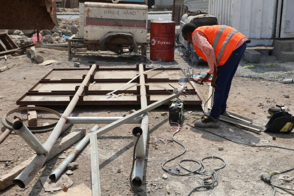Non loin de lui, Mahado Youssouf Djibril, qui a choisi la filière soudure, alterne habilement entre la meuleuse à disque et le poste à souder à l’arc. Elle travaille comme soudeuse au sein de l’entreprise Hawk