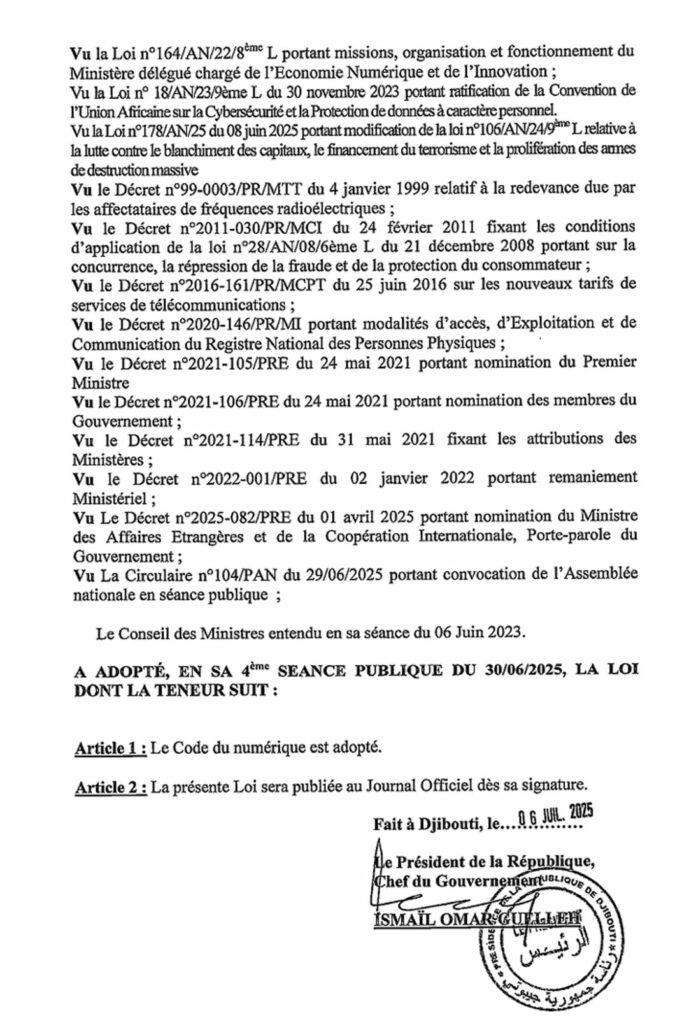 Le Code du numérique n’est pas une fin en soi, mais un socle à partir duquel Djibouti peut bâtir une société digitale souveraine, inclusive et résiliente. Il appelle chaque acteur (public, privé, citoyen) à se mobiliser pour transformer l’ambition numérique nationale en résultats tangibles, au service du développement humain et de la compétitivité économique.