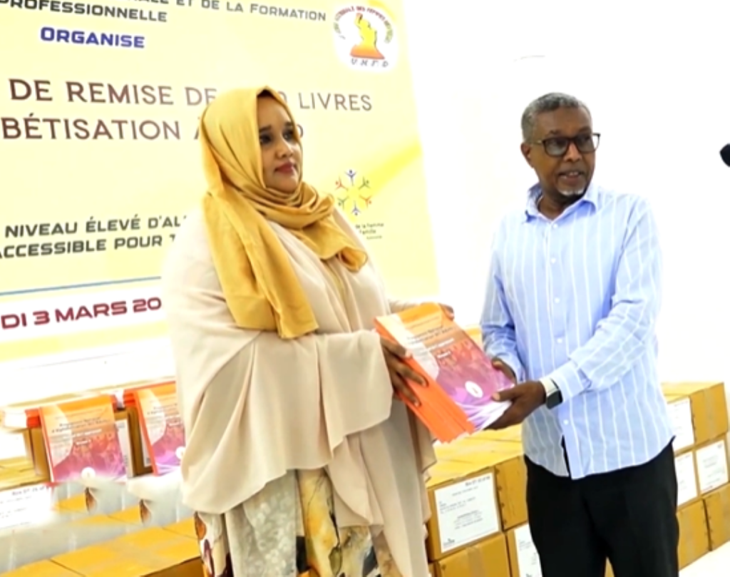 À cette occasion, la directrice générale du CRIPEN, Mme Roda Mahamoud Issa, a procédé à la remise officielle de 3 000 manuels d’alphabétisation de niveau 3 à l’Union Nationale des Femmes Djiboutiennes (UNFD), pour le compte du Ministère de l’Éducation Nationale et de la Formation Professionnelle. La cérémonie s’est déroulée en présence des responsables des deux institutions, du coordinateur national du programme d’alphabétisation, Abdillahi Omar, ainsi que de nombreux enseignants et directeurs d’écoles engagés dans les programmes d’alphabétisation.