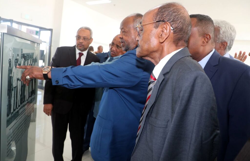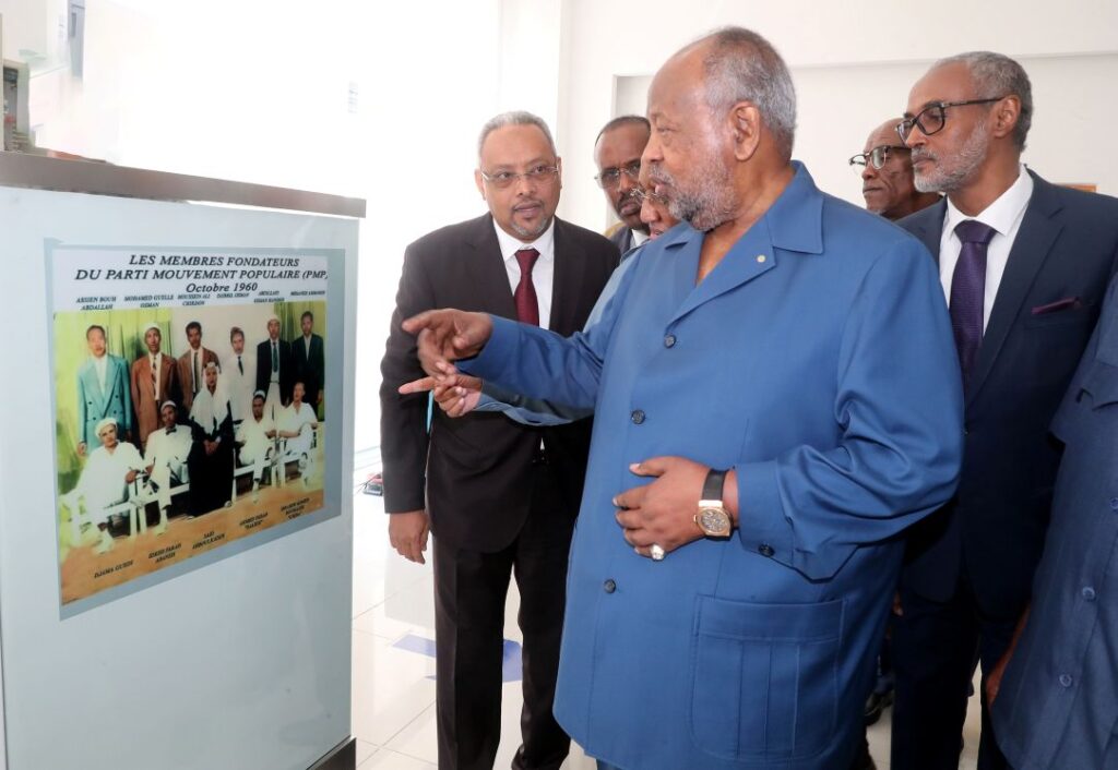 Accueilli à son arrivée sur les lieux par le Premier ministre par intérim, le ministre de la Justice et des Affaires pénitentiaires, chargé des Droits de l’Homme, M. Ali Hassan Bahdon, entouré du Secrétaire général du Gouvernement, M. Almis Mohamed Abdillahi, et de la ministre de la Jeunesse et de la Culture, Dr. Hibo Moumin Assoweh, le Président Ismaïl Omar Guelleh a d’abord visité, dans le hall de la Bibliothèque nationale, une exposition intitulée « Héritage », qui retrace l’histoire de Djibouti.