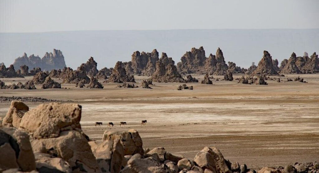 Perché à l’extrémité occidentale de la plaine de Gobaad, dans la région de Dikhil, le lac Abbé est l’un des sites les plus étonnants de Djibouti. Né d’un ancien épisode de rifting datant d’environ 6 000 ans, ce lac salé de 24 km de long est le témoin vivant de l’activité tectonique intense qui anime la région. Situé au carrefour de trois plaques tectoniques – africaine, somalienne et arabique – le site est marqué par la présence d’un graben, une faille géologique ayant provoqué l’effondrement de la croûte terrestre.
