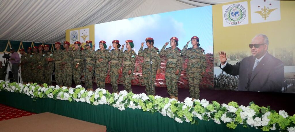 Précisions que ces aménagements nouveaux portent définitivement la capacité d’accueil du camp « Maryama » à environ 2.100 militaires. Sur le fond, le renforcement du site se manifeste essentiellement par sa dispense nouvelle de cours de simulation et de maîtrise préalable de tous les scénarios de guerre en salles, avant le passage à l’expérience sur le terrain, sur l’immense champ de bataille rénové du site. C’est sur le fondement de ces nouvelles dispositions que l’Etat djiboutien revoit, sous la houlette et l’impulsion directe du Président de la République, Chef suprême des forces armées, Son Excellence Ismail Omar Guelleh, à la hausse les missions et ambitions assignées au Camp militaire « Maryama ». Celui-ci monte désormais en grade et quitte son statut initial de structure d’entraînement et d’aguerrissement pour nos seules forces armées. Il devient une Instance d’intégration pour l’ensemble des Pays de la région en termes d’acquisition de compétences indispensables aux missions de maintien de la paix.