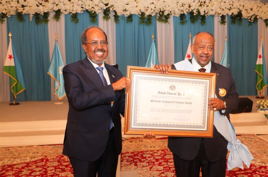 Dans son allocution, le Président Hassan Sheikh Mohamoud a insisté sur la portée diplomatique de ce geste. « Cette médaille, a-t-il affirmé, symbolise la reconnaissance du rôle historique joué par Djibouti dans la pacification de la Somalie, mais aussi la force des liens qui unissent nos deux nations, unies par la langue, la culture et une histoire commune. » Il a ajouté que cette distinction venait sceller « un quart de siècle de fraternité indéfectible et de coopération exemplaire » entre Djibouti et la Somalie, deux pays qui, malgré les défis, n’ont jamais cessé de croire en la valeur du dialogue et de la solidarité régionale.