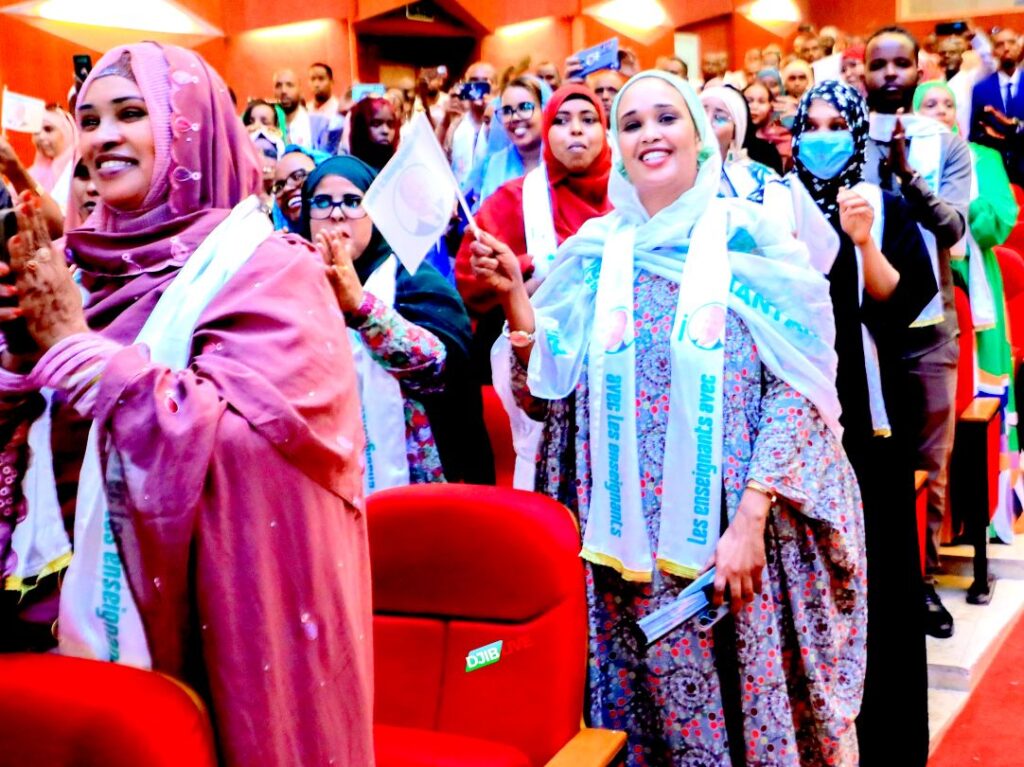La cérémonie a rassemblé de nombreuses personnalités politiques et institutionnelles. Parmi elles figuraient le Premier ministre et président de l’UMP, Abdoulkader Kamil Mohamed, les ministres de l’Éducation nationale, du Budget et des Affaires étrangères, tous anciens membres du corps enseignant, ainsi que des députés, des cadres de l’administration et d’autres figures publiques. Leur présence a donné à cette journée une dimension officielle et symbolique forte, traduisant l’importance accordée au secteur de l’éducation dans la vision politique nationale.