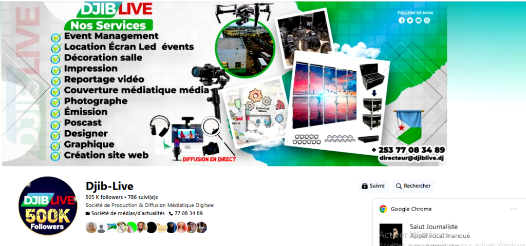 Grâce à cette persévérance et au travail accompli avec une équipe engagée au fil du temps, Djib Live est aujourd’hui devenu une plateforme reconnue dans la couverture des événements nationaux et dans la valorisation des initiatives du pays.