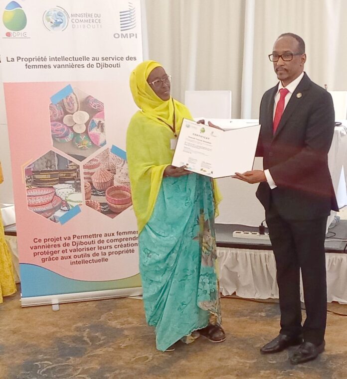 Au terme de trois jours de formation, le ministre du Commerce et du Tourisme, Mohamed Warsama Dirieh, a remis hier matin des certificats aux artisanes vannières, scellant ainsi leur entrée dans un processus de professionnalisation inédit. Organisée par l’Office Djiboutien de la Propriété Intellectuelle et Commerciale (ODPIC), en collaboration avec l’Organisation Mondiale de la Propriété Intellectuelle (OMPI), cette session qui a débuté le lundi dernier au Sheraton hôtel avait pour ambition de doter les créatrices, d’outils juridiques, commerciaux et marketing leur permettant de transformer leur savoir-faire ancestral en véritables actifs économiques protégés.