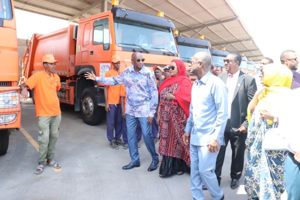 Une atmosphère de fête régnait samedi dernier sur le site de la Base 2 de l’Office de la Voirie de Djibouti, sis au Quartier 7 dans la commune de Boulaos. Sous un ciel bleu éclatant, 28 camions flambant neufs étaient alignés comme des soldats prêts à entrer en mission. Autour d’eux, une foule composée du ministre de l’intérieur, Said Nouh Hassan, de la première vice présidente du Parlement Safia Elmi Djibril, du directeur général de l’OVD, Charmarké Youssouf Moussa, du directeur général de l’ADDS, Mahdi Mohamed Djama, de la préfète par intérim de Djibouti, Halima Hassan Ibrahim, des sous-préfets des différentes arrondissements de la capitale, des présidents des 3 communes de Djibouti-ville, Ibrahim Said Ibrahim (Ras Dika), Abdoulkader Iman Aden (Boulaos) et Mohamed Hassan Said (Balbala), de représentants de la société civile, de journalistes et surtout des employés de l’Office, réunis en uniforme orange, ne cachait pas sa fierté. L’ambiance était à la fois solennelle et enthousiaste.