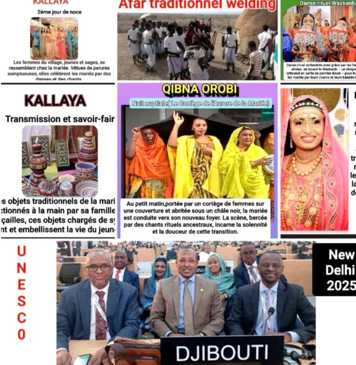 Le 9 décembre 2025, à New Delhi, l’UNESCO a inscrit le Qibna Orobi — rituel central du mariage traditionnel afar — sur la Liste représentative du patrimoine culturel immatériel de l’humanité. Cette distinction, portée par Djibouti avec le soutien de plusieurs pays partenaires, consacre un héritage vivant qui raconte l’histoire, la sensibilité et la cohésion du peuple Afar.