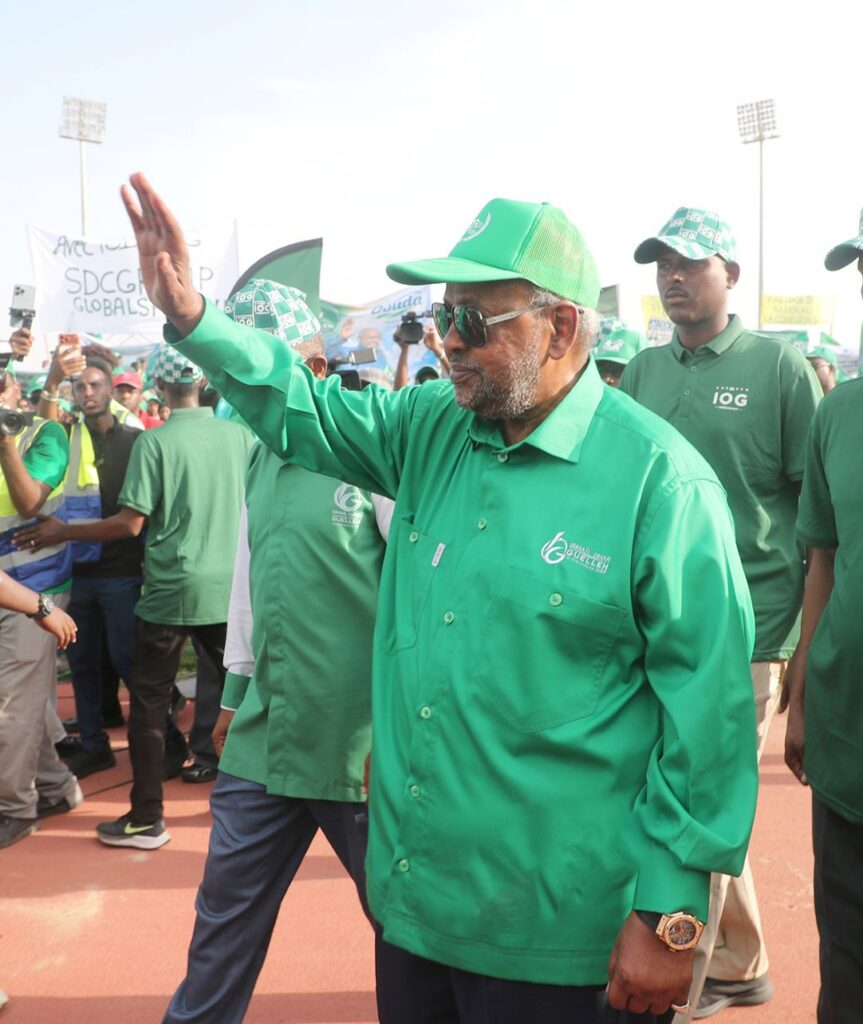 Dès les premières heures de l’après-midi, une dynamique irrépressible s’est emparée de la capitale. Par vagues successives, des milliers de militants et sympathisants convergent vers le stade El Hadj Hassan Gouled Aptidon. Drapés de vert, arborant fièrement les couleurs de leur candidat, ils avancent en cortèges compacts, scandant slogans et chants à la gloire du président sortant.