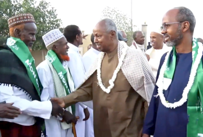 Dans une ambiance empreinte d’enthousiasme et de mobilisation populaire, la tournée de campagne de l’Union pour la Majorité Présidentielle (UMP) a marqué une étape significative dans la région de Dikhil. Cette halte s’inscrit dans la dynamique nationale engagée en perspective de l’élection présidentielle du 10 avril 2026. Le Directeur national de campagne du candidat de l’UMP, M. Abdallah Abdillahi Miguil, a conduit une importante délégation venue à la rencontre des populations locales. À son arrivée sur l’esplanade de l’hôtel Gobaad, la délégation a été accueillie par une foule nombreuse composée de notables, de jeunes, de femmes et de militants venus réaffirmer leur engagement.
